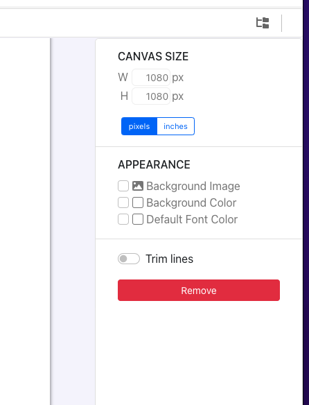Canvas Size: The canvas size will be the size you chose during the initial setup for your template. For example, if this is a social post, your canvas size is automatically set at 1080px x 1080px. Typically, most canvas sizes are set at pixels.
